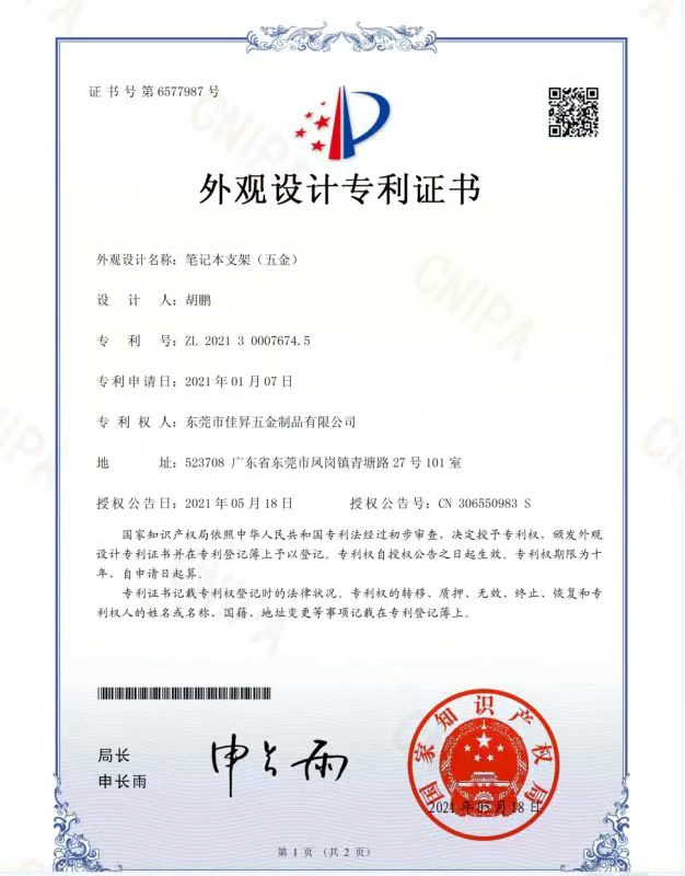 ◆ 專利權(quán): 擁有8項(xiàng)由國家知識(shí)產(chǎn)權(quán)局頒發(fā)的外觀設(shè)計(jì)專利證書